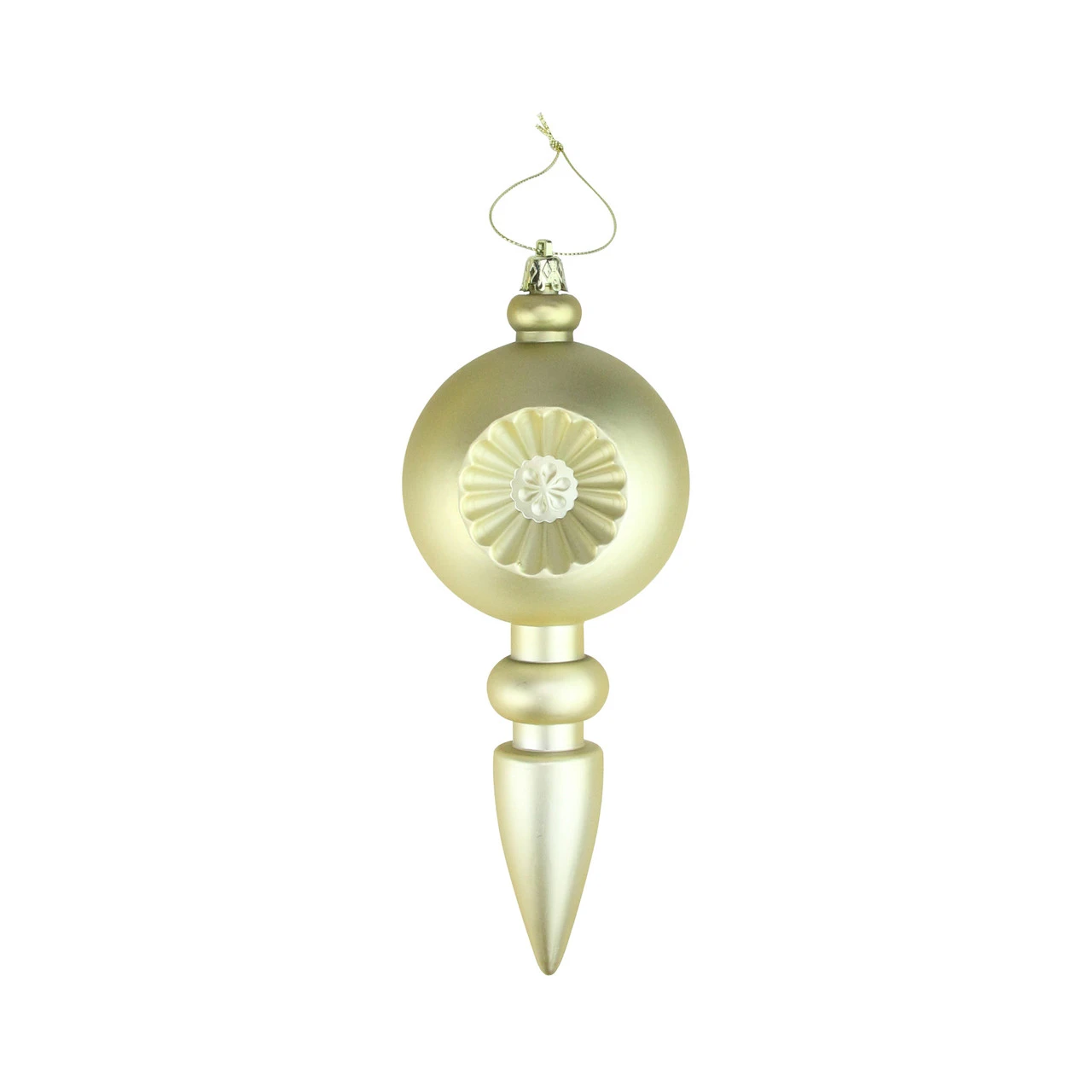 Finials are equipped with gold ornament caps and come ready-to-hang on gold cords