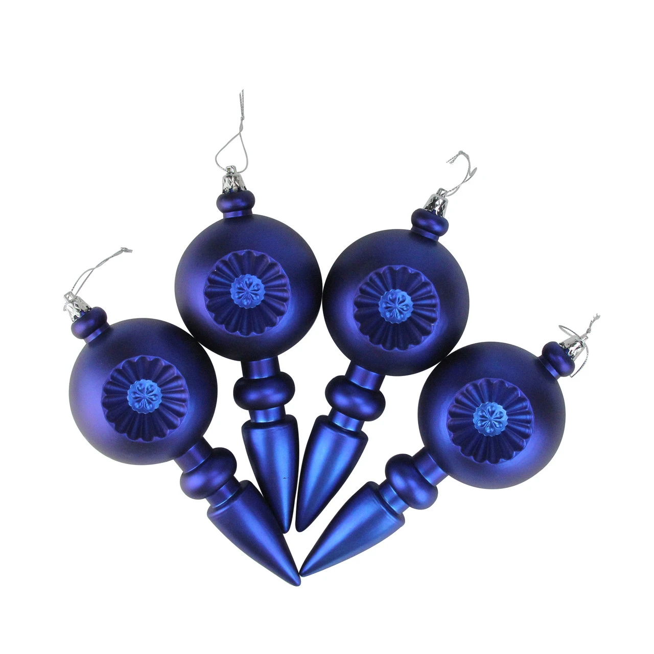 Finials are equipped with silver ornament caps and come ready-to-hang on silver cords
