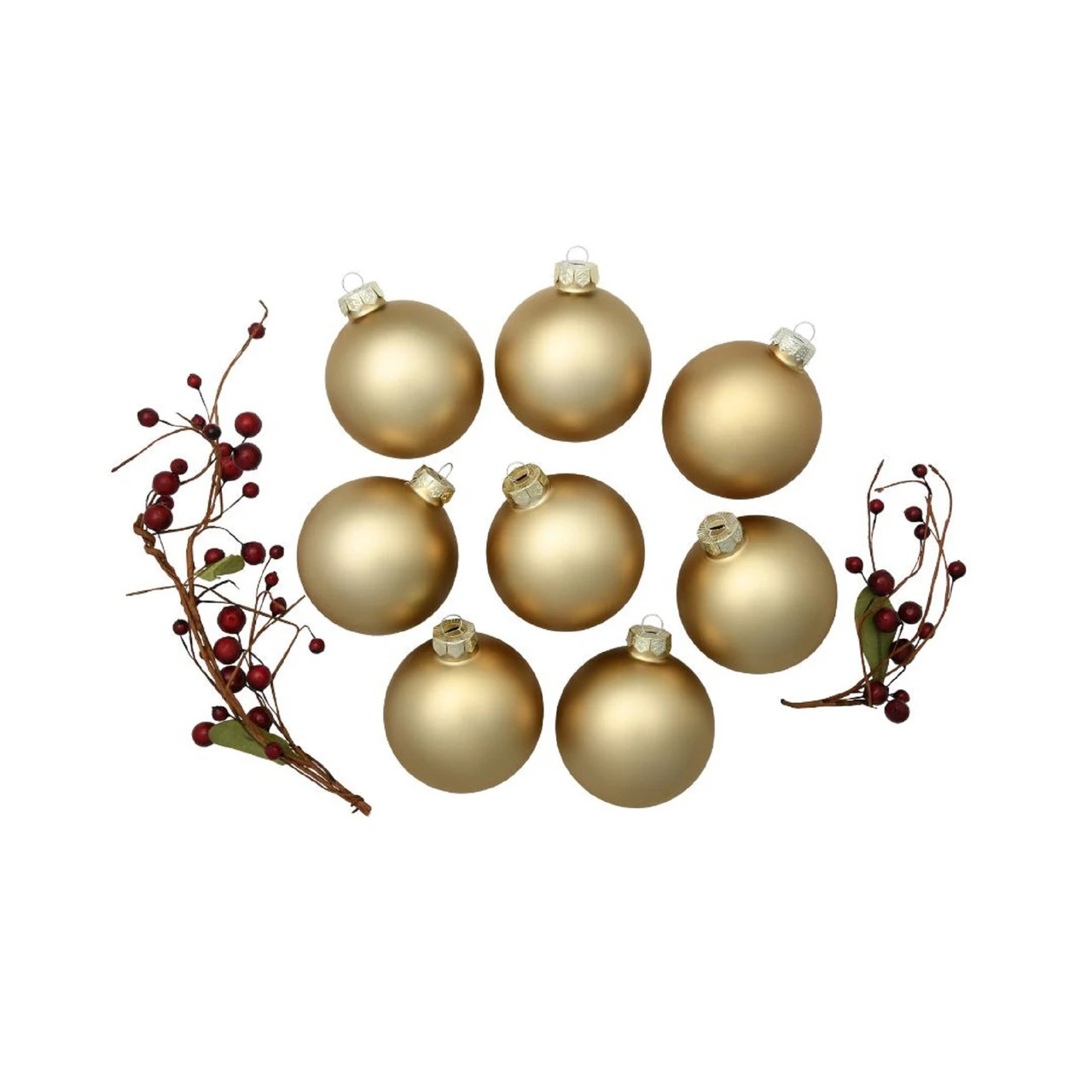Balls are equipped with gold ornament caps