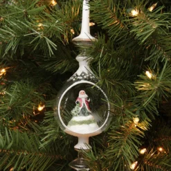 12.5″ Winter Scene With Santa Claus Inside Of Glass Christmas Pendant Finial Ornament