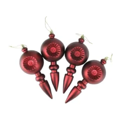 4ct Burgundy Red Retro Reflector Shatterproof Christmas Finial Ornaments 7.5″