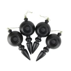 4ct Black Retro Reflector Shatterproof Matte Christmas Finial Ornaments 7.5″