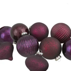 Set Of 12 Purple Tone Finial And Glass Ball Christmas Ornaments