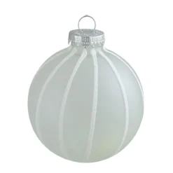 4ct Clear Frosted And White Glitter Striped Matte Glass Christmas Ball Ornaments 3.5″ (90mm)