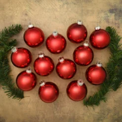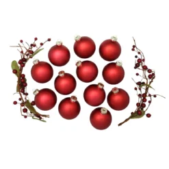 16-Piece Set Of Assorted Red Glass Christmas Ball Ornaments With Tree Topper