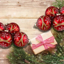 4ct Red And Gold Glass Hanging Christmas Ball Ornaments 2.5-Inch (67mm)