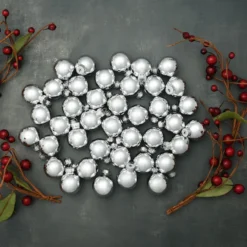 40ct Silver Matte Glass Ball Christmas Ornaments 1.5″ (40mm)