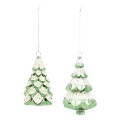 Set Of 6 Green And White Glass Christmas Tree Ornaments 5.75″