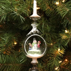 12.5″ Winter Scene With Children Building Snowman Inside Of Glass Christmas Pendant Finial Ornament