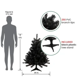 4′ X 24″ Slim Black Tinsel Artificial Christmas Tree – Unlit