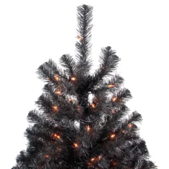 6ft Pre-Lit Black Noble Spruce Artificial Halloween Tree, Orange Lights