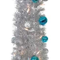 6′ Pre-Lit Silver Tinsel Pop-Up Artificial Christmas Tree – Warm White LED Lights