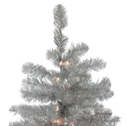 7.5′ Pre-Lit Silver Tinsel Pine Slim Artificial Christmas Tree – Clear Lights