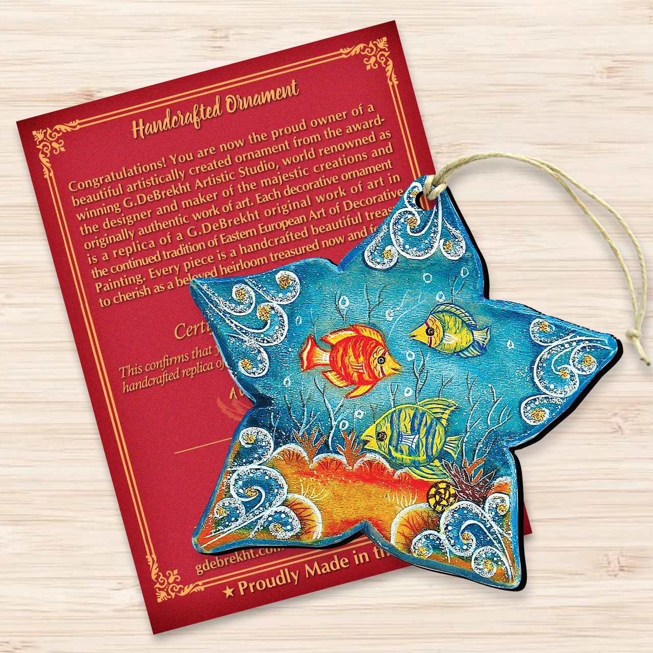 Ornaments depict a starfish with fishes and a snail shown in its body